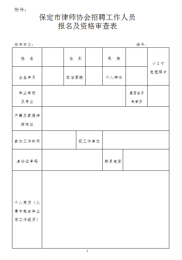 附件:《保定市律师协会招聘工作人员报名及资格审查表》.docx